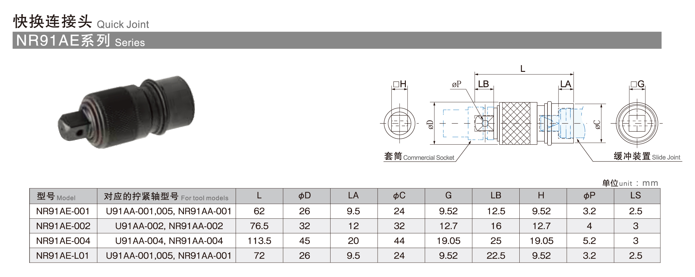 CORETEC Slide Joint Quick Joint NR91AE Series