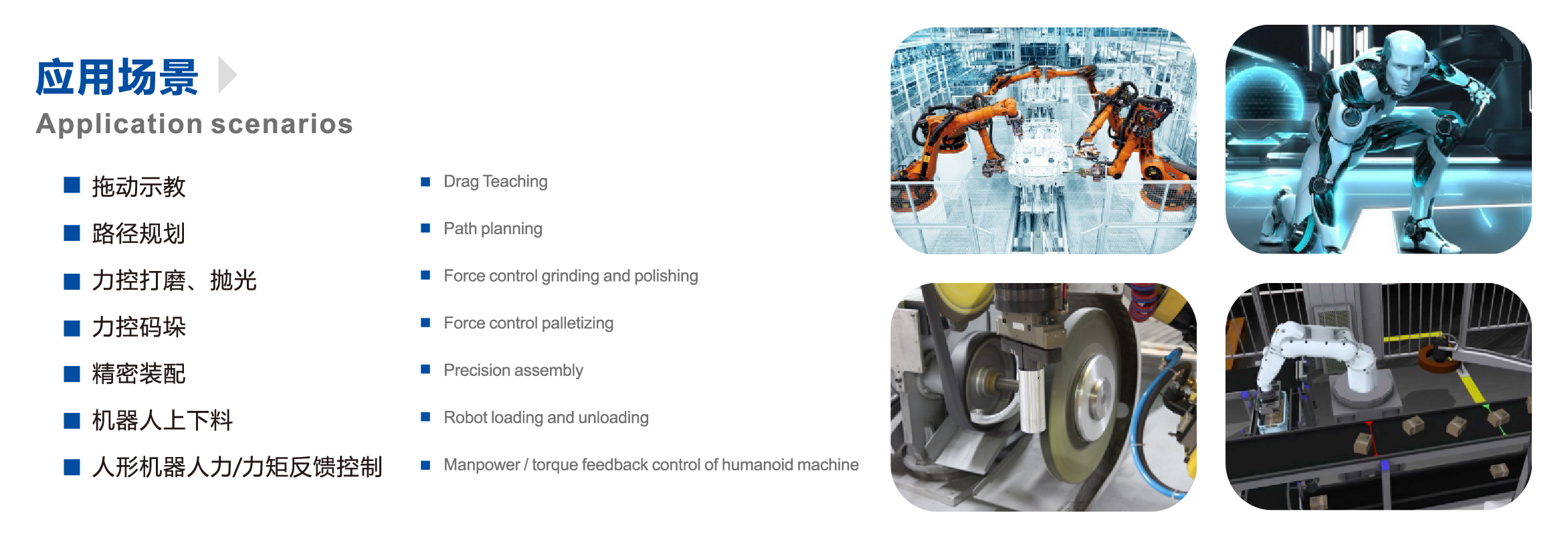 應(yīng)用于工業(yè)機(jī)器人、協(xié)作機(jī)器人、外骨骼機(jī)器人、醫(yī)療康復(fù)機(jī)器人、柔性夾爪和機(jī)器人關(guān)節(jié)、自動化測量、控制及風(fēng)洞測試等。