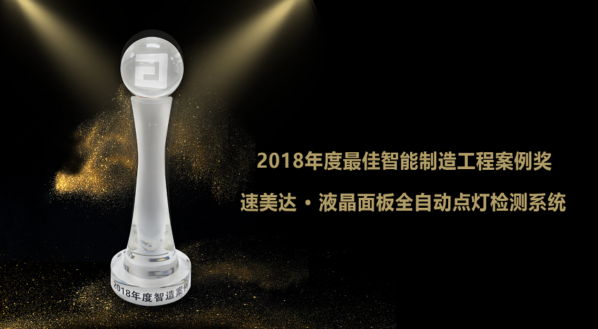 2018年12月18日,以“機(jī)器人進(jìn)入中國(guó)時(shí)間”為主題的2018高工機(jī)器人金球獎(jiǎng)?lì)C獎(jiǎng)典禮在深圳隆重舉行。 速美達(dá)憑借“液晶面板全自動(dòng)點(diǎn)燈檢測(cè)系統(tǒng)”獲得組裝檢測(cè)類(lèi)“年度最佳智能制造工程案例獎(jiǎng)”。