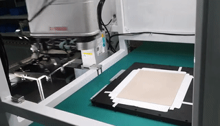 速美達(dá)紙盒紙板貼合項(xiàng)目均是利用YAMAHA四軸機(jī)器人與速美達(dá)自研視覺系統(tǒng)進(jìn)行協(xié)作完成的,通過(guò)四軸機(jī)器人將預(yù)定位置的紙盒吸取并按照設(shè)定的軌跡移動(dòng)至面紙上方,再將紙盒進(jìn)行視覺定位精準(zhǔn)的貼合于面紙上,以此達(dá)到貼合的目的。