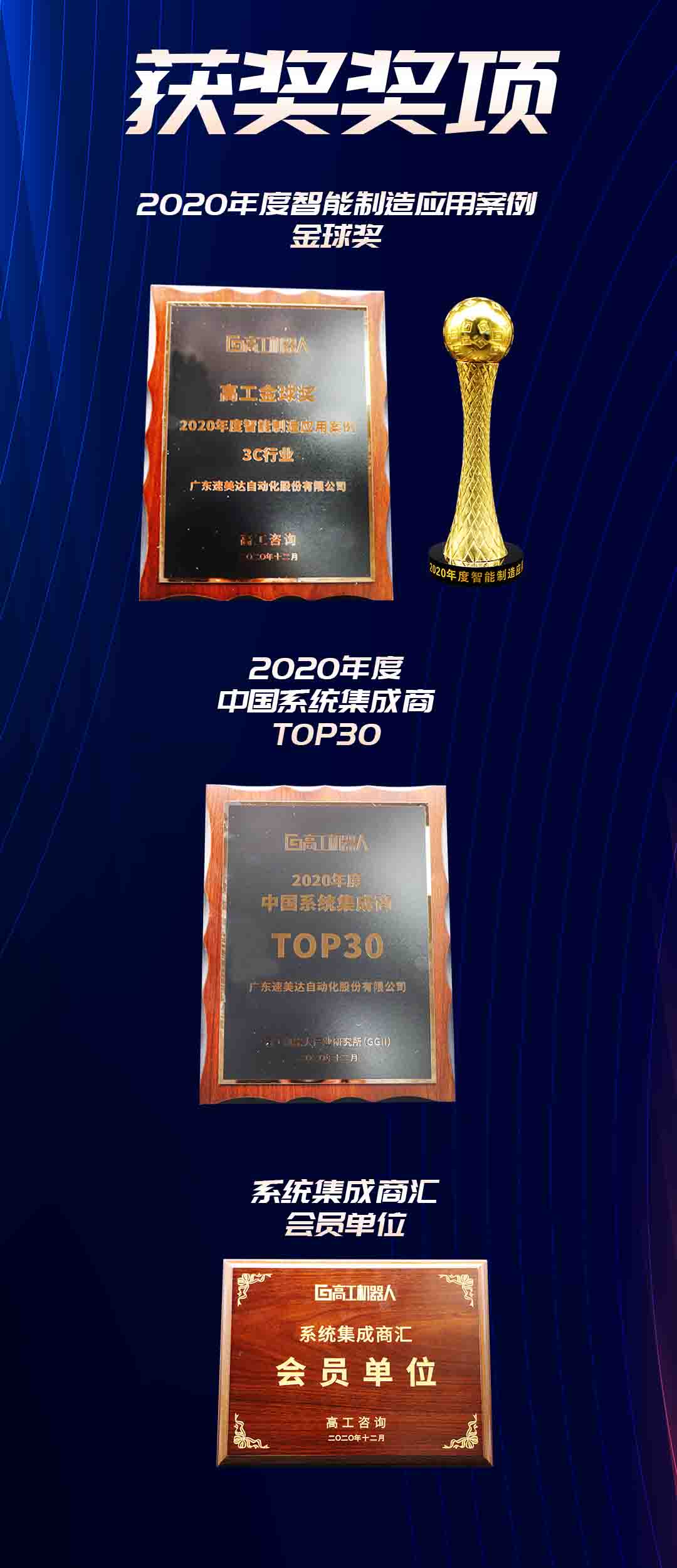 經(jīng)過激烈的投票和專家評審,速美達(dá)榮幸獲得2020年度智能制造應(yīng)用案例3C行業(yè)金球獎,被評為2020年度中國系統(tǒng)集成商TOP30,并且成為第一批系統(tǒng)集成商匯會員單位。