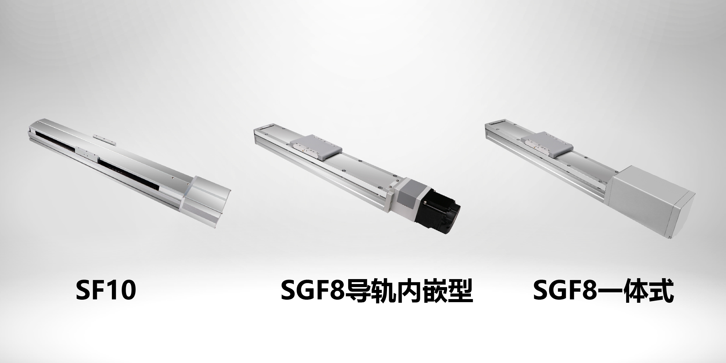 SF標(biāo)準(zhǔn)絲桿型、SGF導(dǎo)軌內(nèi)嵌型以及全新升級(jí)的內(nèi)置驅(qū)控一體型 SGF8。