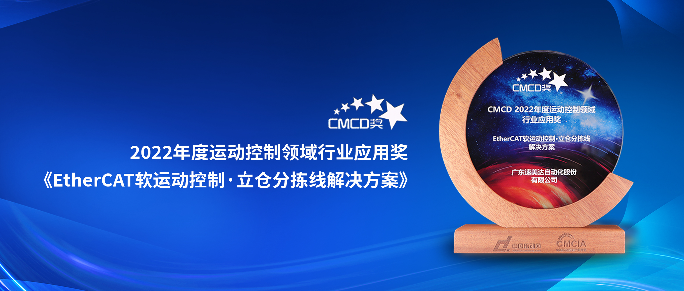 2022年,中國(guó)工業(yè)在疫情的壓力下艱難前行,在這樣的大環(huán)境下,速美達(dá)始終堅(jiān)守初心,憑借著優(yōu)越的解決方案和持續(xù)的創(chuàng)新能力,在行業(yè)中脫穎而出,憑借方案《EtherCAT軟運(yùn)動(dòng)控制 · 立倉(cāng)分揀線解決方案》,獲得“CMCD 2022年度運(yùn)動(dòng)控制領(lǐng)域行業(yè)應(yīng)用獎(jiǎng)”這一寶貴獎(jiǎng)項(xiàng)。