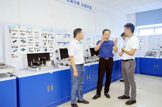各會長單位在張平良副總經(jīng)理的陪同下,參觀了速美達(dá)智能制造產(chǎn)品展示廳,介紹了展廳展示的優(yōu)勢技術(shù)產(chǎn)品,與大家現(xiàn)場交流技術(shù)心得。